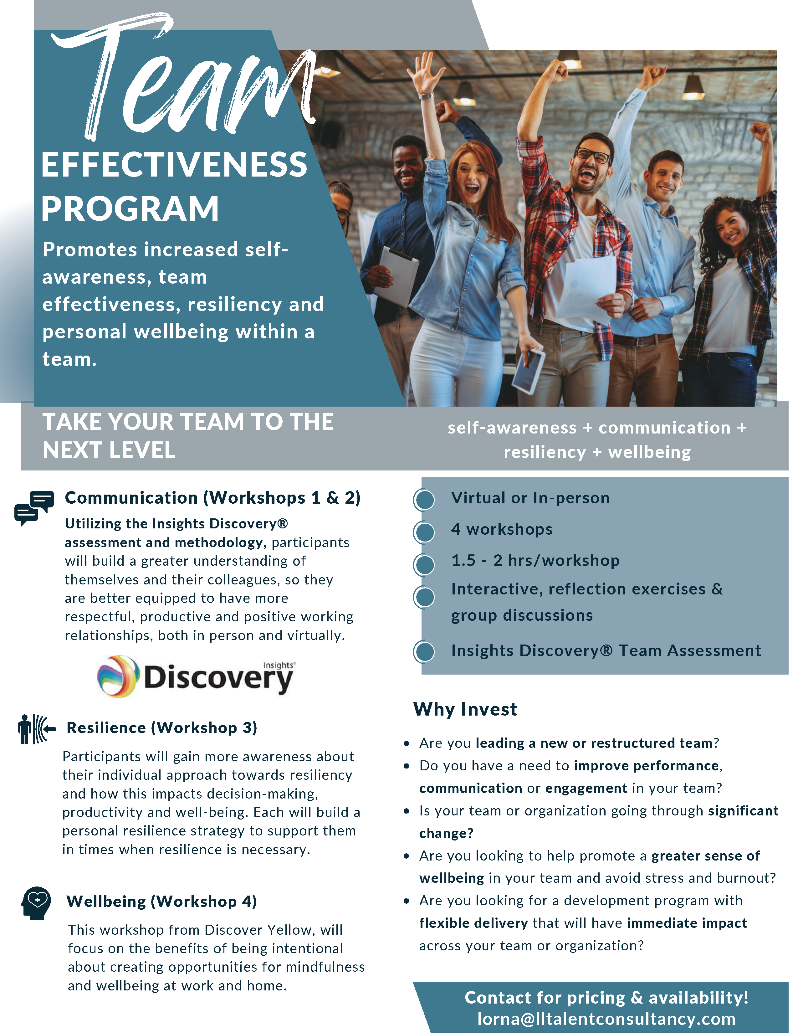 Contact us today for a free consultation to discuss how Discover Yellow can help positively impact you, your team and your organization!
